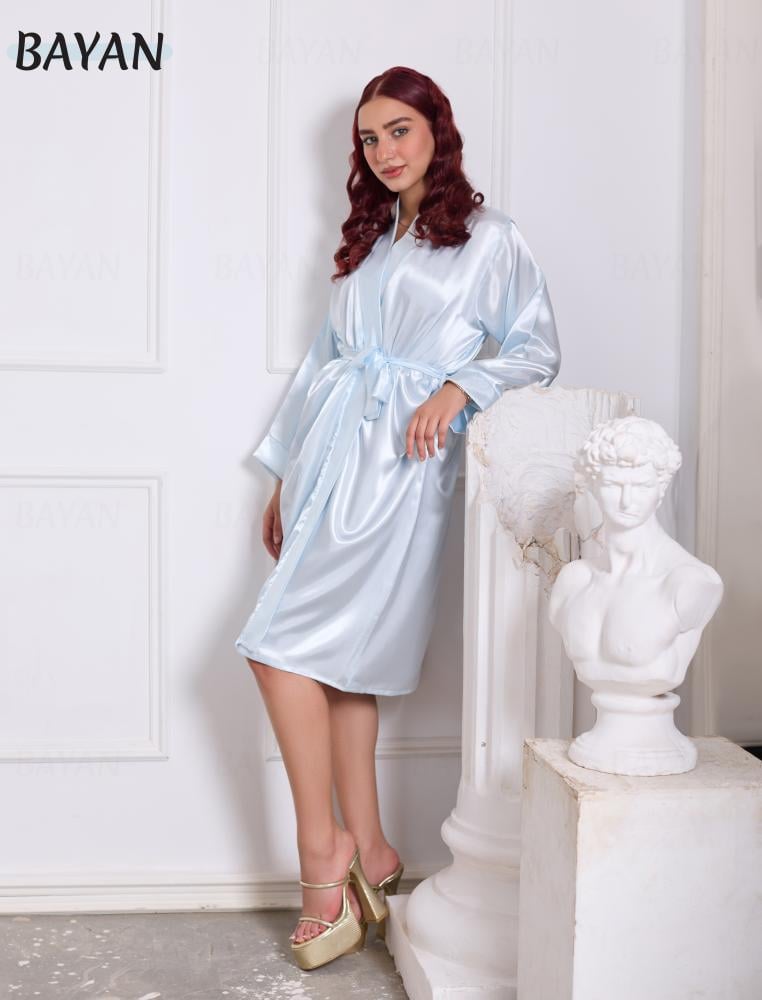 كوني أنيقة في يوم العمر وارتدي روب عرايس تطريز بالاسم من خامة الحرير الناعمة مريح باللبس ومناسب للتجهيزات الأولية عند تصفيف الشعر.